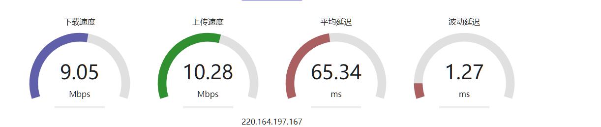 下载速度10.08Mbps 上传速度10.31Mbps 平均延迟59.33ms 波动延迟4.78ms