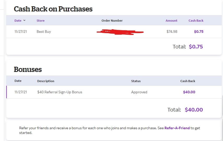 目前黑五期间,官方搞活动,通过别人的邀请链接注册账户,并且在90 天内通过Rakuten消费$40,你自己的账号就奖励40刀(当然邀请你的人也有奖励,各自都得到40刀)
