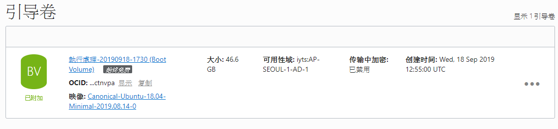 天方地圆孔方兄 发表于 2019-9-19 11:44 看一下 引导卷 boot volume,如果名字旁边没有始终免费就是扣费的。机子要重装。一定要确保引导卷始终是有 ...